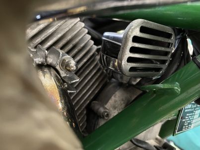 20.11.2022 - Weiter geht's: Mit Hilfe eines Youtube-Videos habe ich mich schlau gemacht: Um die Zwischenscheibe auszurichten, wird mittels langer Schrauben die Kupplung ganz leicht gespannt, dann linst man durch "Gucklöcher" im Schwungrad, um die Zähne des Zwischenrads mit Hilfe eines Schraubendrehers korrekt auszu- richten, bis die Zähne ineinander rutschen. Danach wird's aber noch lästiger: Obwohl die Kupplung korrekt zentriert ist, rutscht das Getriebe nicht an seinen Platz, als Grund mache ich das neue Kupplungsrad aus, das noch ziemlich "spack" sitzt. Ich muss in die Trickkiste greifen: Mit 2 Schrauben setze ich das Getriebe an einer Seite unter Spannung und klopfe auf der anderen Seite mit einem Gummihammer drauf. Irgendwann macht es "klack" und das Getriebe rutscht endlich. Als Erstes wird nach dem Festziehen des Gehäuses die Kupplung auf Funktion geprüft, indem ich den Kupplungszug einhänge und probiere - geht! Jetzt ist der Kardan dran: Ich klopfe das alte Stützlager aus dem Kardangehäuse, das neue wird mit einem Monster-Durch- schlag (vom Flohmarkt) eingetrieben, nachdem ich das Gehäuse mit dem Heiss- luftföhn erhitzt habe. Apropos Hitze: Meine Propangasflasche ist gegen Nachmittag leider leer, es wird kalt in der Garage... Das Kreuzgelenk wird mittels eines Spezial- werkzeugs in das Stützlager eingeklopft, dann kann die Schwinge montiert werden, gefolgt vom Endantrieb. Es wird Zeit, den Rahmen wieder zusammen zu fügen: mit einem Spanngurt ziehe ich die beiden Hälften wieder zsammen, setze die Fussrasten- platten an, die Sturzbügel und den Hauptständerträger, dann kann das Mopped eigentlich wieder abgelassen werden. Freund Dieter hat 10 Minuten Zeit, wir heben das Mopped vom Bock, nachdem ich noch das Hinterrad und die Stoß- dämpfer montiert habe - Feierabend! 21.11.2022 - Eine unangenehme Aufgabe steht an: Ich muss den Luftfilter nebst Ansauggeräuschdämpfer, Batterieträger und Benzinleitung montieren und in Einklang bringen... Wenn ich den Erbauer dieser Bauteile jemals erwischen sollte, erwürge ich ihn, soviel steht fest! Aber irgendwann ist auch diese Hürde genommen, ich sortiere noch einige Kabel und Schläuche, dann ist zum wieder- holten Mal die Auspuffanlage dran. Zuerst popele ich die vermutlich 31 Jahre alten Krümmerdichtungen aus den Zylinderköpfen, dann werden die Krümmer, das Mittelstück und dann die Töpfe angebracht. Dann tausche ich noch die Tieftonhupe aus, die nur arg erkältete Töne von sich gibt. Was fehlt noch? Der Anlasser: Ich habe für 55 Euro (!) ein nagelneues Teil ergattern können, sogar in Bonn. Zum Tagesabschluss hole ich mir das ab, ich bin neugierig, ob ein 55 Euro Anlasser überhaupt funktioniert...