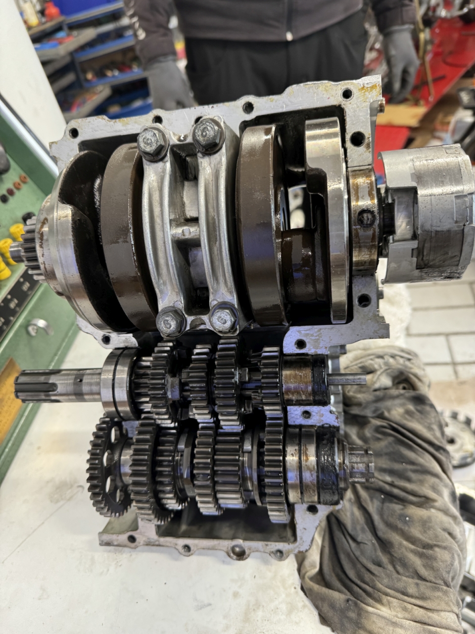 Motor auf die Werkbank, dann wird der rechte Motordeckel