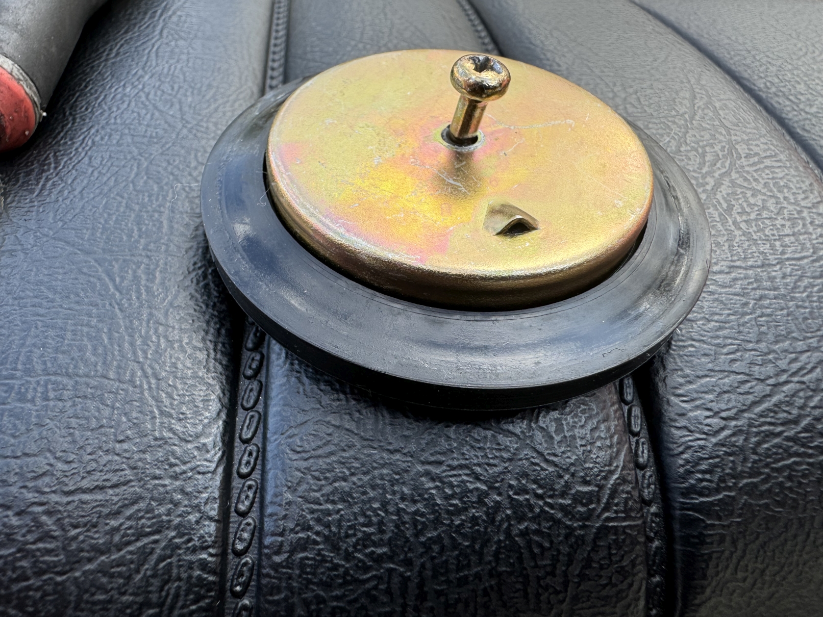 15.07.2024 - Ich warte noch auf den Bericht des Prüfers, ob nun die Haupt- untersuchung inkl. Oldtimerabnahme "durch" ist oder nicht, in der Zwischen- zeit kann ich mich um 2 Problem kümmern: Beim Laufenlassen vor der Prüfung fiel mir auf, dass ein kleiner Öltropfen unter dem Motor lag, das sehe ich mir jetzt an. Auf jeden Fall kommt es von links, daher baue ich den Ritzeldeckel ab. Mmh, so direkt ist nichts zu sehen, der Deckel ist auch trocken, aber am Simmerring der Kupplungsstange glitzert Öl. Habe ich noch einen neuen Simmering? Kann sein, aber wenn, dann nur ein Zubehörteil, da werde ich ein Originalteil bestellen. Zum zweiten Problemchen: der Deckel des Bord- werkzeugbehälters wird nur mit einer Art Bajonettverschluß gehalten - das geht nicht gut... Nach einigem Überlegen entscheide ich mich für folgende Maßnahme: In Deckelrand und Behälter wird ein kleines Loch gebohrt, eine kleine Schraube soll verhindern, dass der Deckel flöten geht. Da ich aber innen keine Mutter anschweißen kann (das Teil ist aus Kunststoff), wird mit Sekundenkleber eine Hutmutter angeklebt, das sollte hoffentlich genügen. Das muß aber erstmal trocknen, daher lasse ich alles offen stehen.