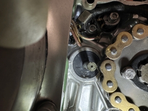 28.10.2024 - Eine Sache will ich noch prüfen: Ich baue das Ritzel von der Getriebe- welle ab und starte den Motor - ich will sehen, wo das Öl gelaufen kommt. Etwas überrascht bin ich, das es nicht - oder kaum - an der Dichtlippe des Simmerrings gelaufen kommt, sondern massiv an der linken Unterseite der Simmerringseite... Ich denke, ich werde mir vorsorglich auch noch ein Motorunterteil besorgen.