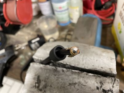 13.02.2023 - Endlich habe ich ein wenig Zeit, mich um den Einbau des schon vor einiger Zeit eingetroffenen neuen Pickups zu kümmern. Das Altteil ist schnell ausgebaut, das neue Pickup braucht ein neues Massekabel, das mit einer Mini- Ringöse an eine der beiden (ebenfalls Mini-) Inbusschrauben befestigt wird. Dazu brauchen die Kabel einen Schutz, ein Bougierrohr übernimmt die Aufgabe. Die Stecker musste ich abzwicken, nachdem die neuen Kabel ihren Schutz haben, werden neue Stecker vercrimpt und verlötet. Probieren wir's aus: Nachdem ich mit der Zündverstellung herumgespielt habe, springt der Motor nach zahlreichen Tritten endlich wieder an. Ich lasse ihn im Stand 10 Minuten warmlaufen, aber für eine Probefahrt ist's heute zu spät - erst die wird zeigen, ob das Problem endlich behoben ist.