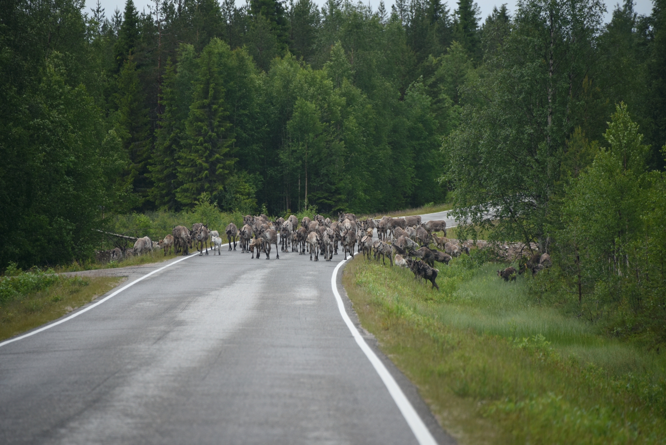 lästig! 5 mal muß ich warten, weil Rentiere auf der Straße zockeln,