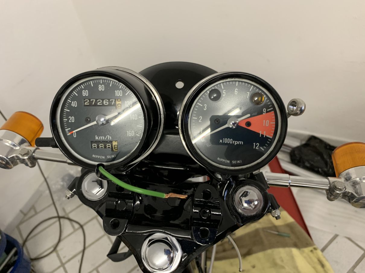 überholten Drehzahlmesser und den Lenker montieren, aber schon der