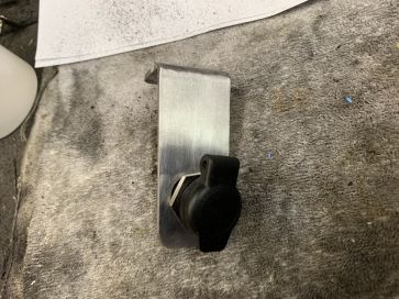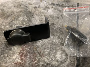 Der Kabelhalter und das Halteblech für die Bordsteckdose, beide Teile