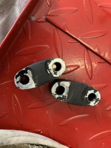 eine übrig gebliebene Klemmung eines Gabelfuß, dessen Löcher auf 8 mm