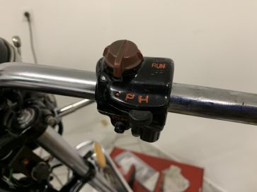 Dann wird der neue Repro-Lenkerschalter rechts montiert, die Kabel