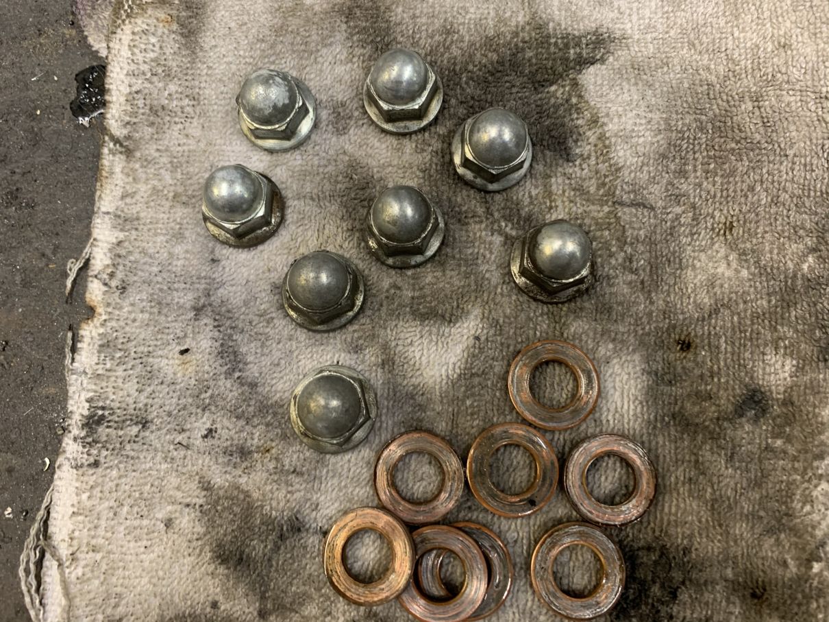 Zuhause werden die Hutmuttern gereinigt und von Flugrost befreit, die