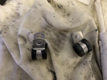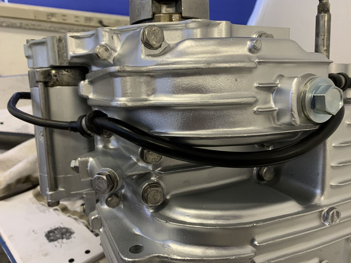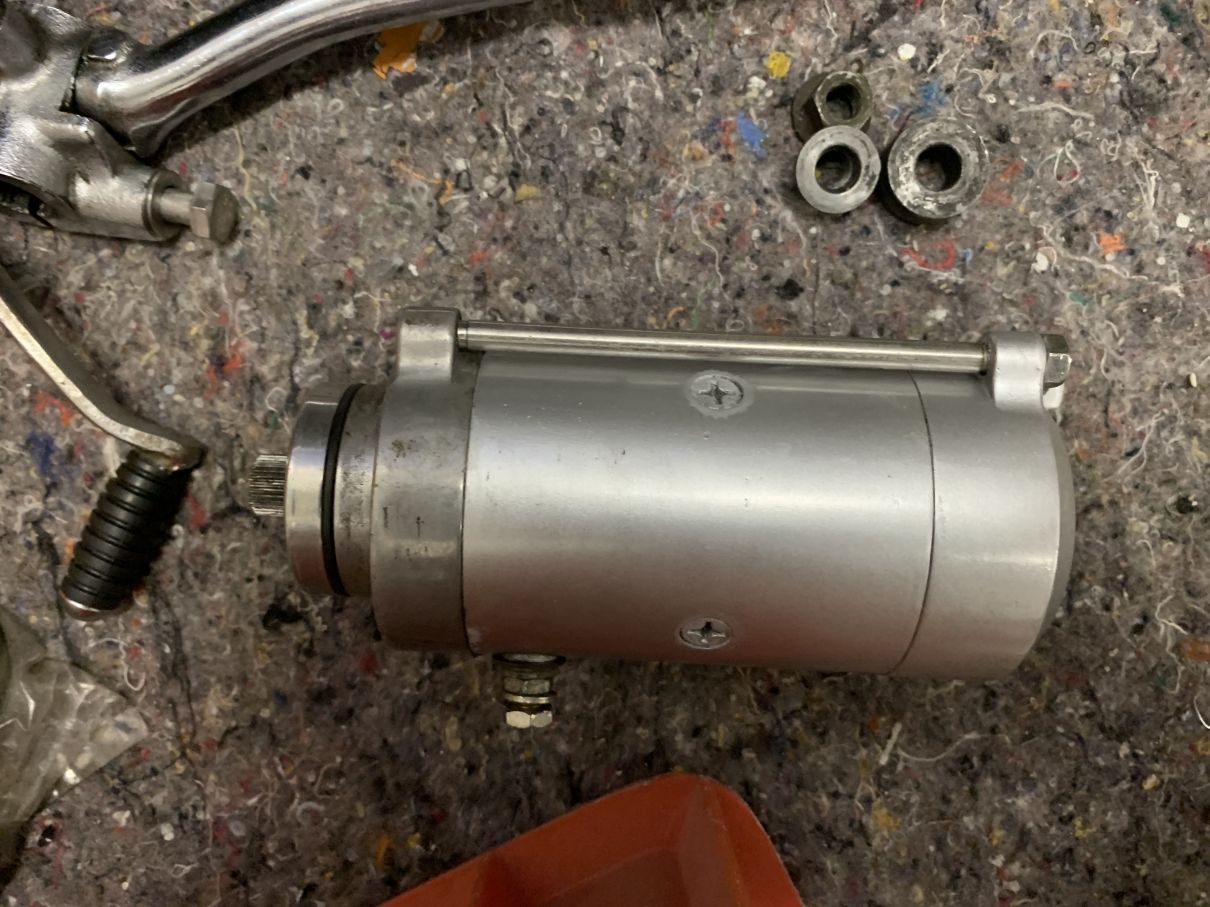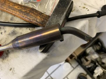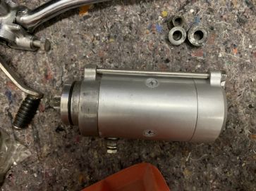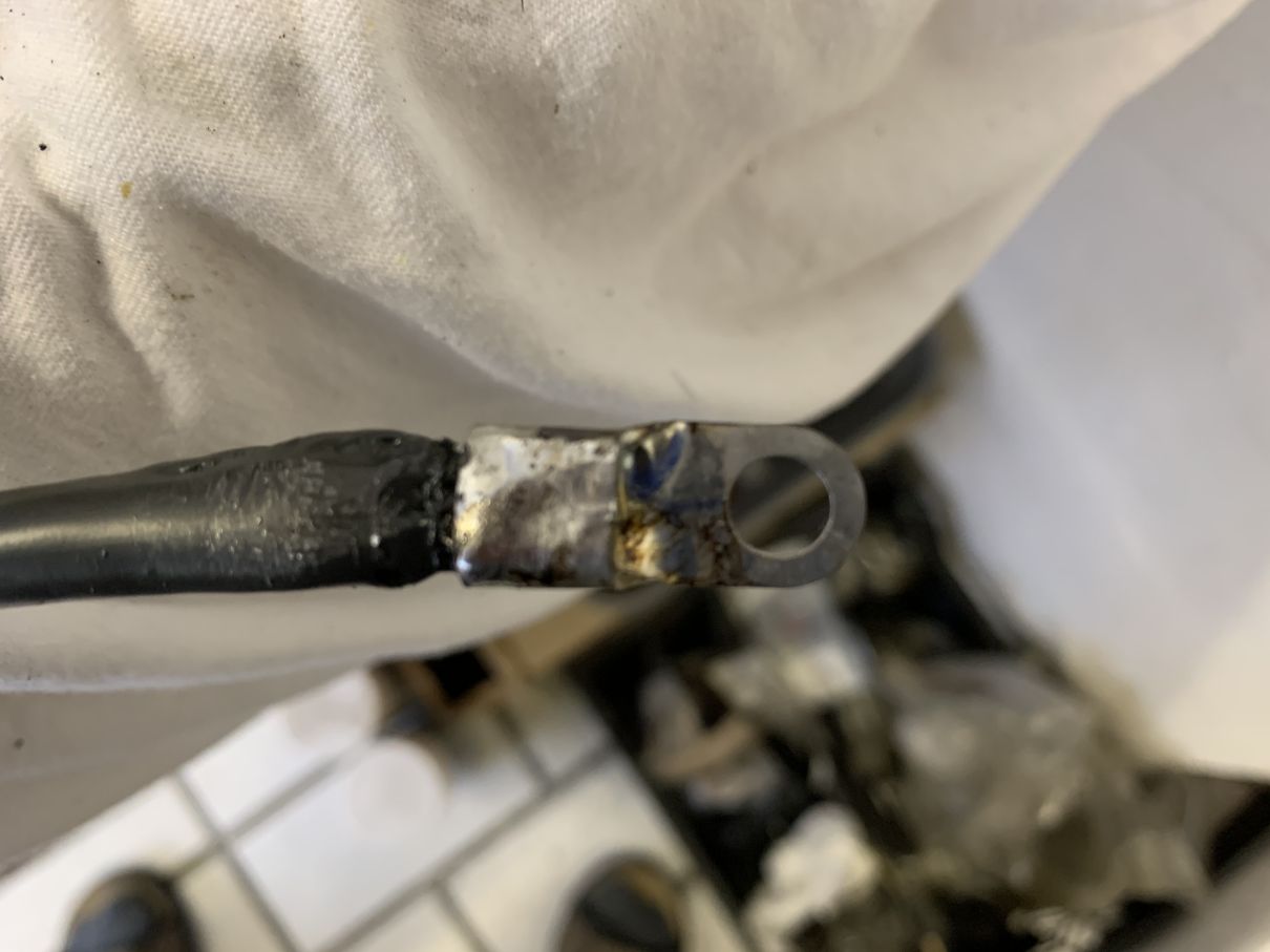 27.12.2020 - Es ist bitterkalt und windig in der Garage... Wir suchen oder "bauen" uns die passenden Schrauben für die Motorhalterungen zusammen und machen alles bereit für den Einbau des Motors. Weiter geht's mit dem Anlasserkabel, das vor dem Einbau des Motors verlegt werden sollte, sonst hat man kaum Platz. Wir haben 2 davon, das bessere soll genutzt werden, aber bei beiden ist der Schutz um die Isolierung zerbröselt. Am besten wäre ein Stück Benzinschlauch, aber der ist zu dickwandig, ein Bougierrohr tut's auch. Eine der Kabelösen muß abgezwickt werden, damit wir das Bougierrohr montieren können, wir nutzen ein Gleitmittel für Kabel, um das Rohr auf das Kabel zu schieben, erst nach 15 Minuten gelingt es uns. Dieter wird's zu kalt, er zieht sich zurück. Ich werfe das 150 Watt Lötmonster an, dann wird eine neue Ringöse erst vercrimpt, dann verlötet, vorher wird noch ein neuer Gummischutz für den Stromanschluß montiert. Ich lege das Kabel am Motor entlang, zwei isolierte Kabelklemmen nehmen das Kabel auf. Leider muß ich dafür auch noch zwei längere Schrauben anfertigen, da die Kabelschellen recht dick sind und die Schrauben zu kurz. Aber jetzt wird's auch mir zu kalt, ich räume das Feld.