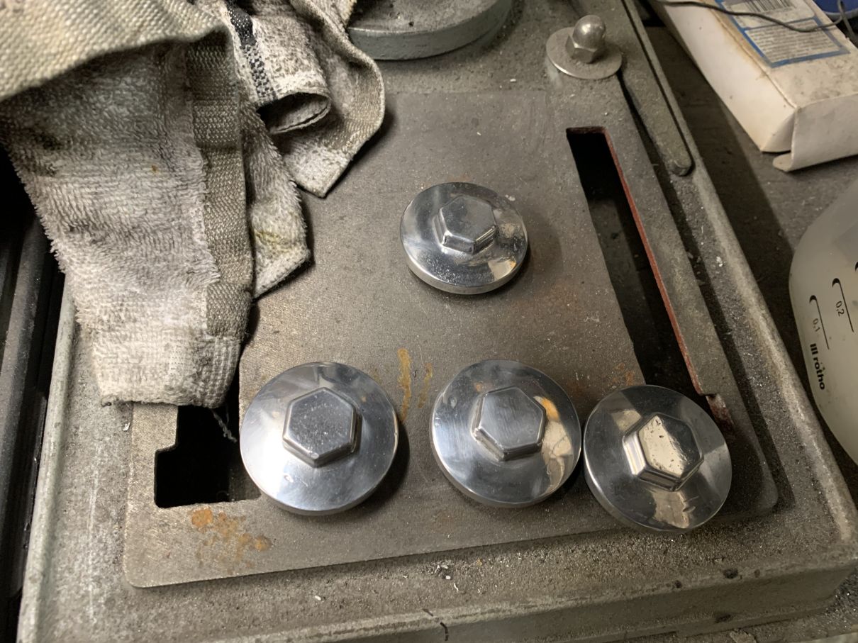 23.12.2020 - Dieter kommt vorbei, er hat etwas Zeit. Zuerst setzen wir den Anlasser komplett zusammen und dackeln in die Garage. Der Anlasser wird an einer Batterie mit Starthilfekabeln angeklemmt und getestet - er dreht und scheint Kraft zu haben - Ufff.. Dann wird er an den Motor geflanscht, leider ist die Anlasserkette zu lang ge- worden und muß durch ein Neuteil ersetzt werden. Zurück in den Bastelkeller, wir nehmen uns die 4 Ventildeckelchen vor, sie werden abgeschliffen und poliert. Zuletzt sichten wir die uns zur Verfügung stehenden Vergaser und Teile. Es ist viel da, aber das wird eine ordentliche Puzzelei, daraus ein brauchbares Pärchen zusammen zu setzen... 24.12.2020 - Natürlich wird heute gearbeitet - zumindest bis zum Abend. Wir ziehen uns in den beengten Bastelkeller zurück und setzen den Heiz- lüfter in Betrieb. Zwei saubere Vergasergehäuse (waren bereits an der anderen CB250 kurz in Betrieb und daher bereits gereinigt) warten auf Komplettierung und Teile. Zuerst brauchen wir für den ersten Vergaser eine Drosselklappe und ein paar Dichtungen, wir setzen die Klappe ein, prüfen das Spiel und kontrollieren anhand einiger anderer Vergaserwracks, ob wir alles richtig zusammen gesetzt haben. Weiter geht es mit der Unterseite: Alle Düsen, der Schwimmer, das Schwimmernadelventil und anderes Zeugs fehlen, wir haben aber Überholsätze, die viel, aber nicht alles an Teilen hergeben, manche Brocken müssen wir aus den anderen Vergasern klauen, reinigen und unserem Vergaser einverleiben. Viel Zeit geht für die Recherche drauf, was wo in welcher Größe wo hin gehört, bis wir die Oberseite mit den Luftdüsen, dem Kolben, der Düsennadel und der Membran einsetzen können, gefolgt von einem nagelneuen Chromdeckel. Als I-Tüpfelchen findet sich im Teilefundus noch ein kompletter Satz Edelstahl- Schrauben - ein Vergaser ist fertig.