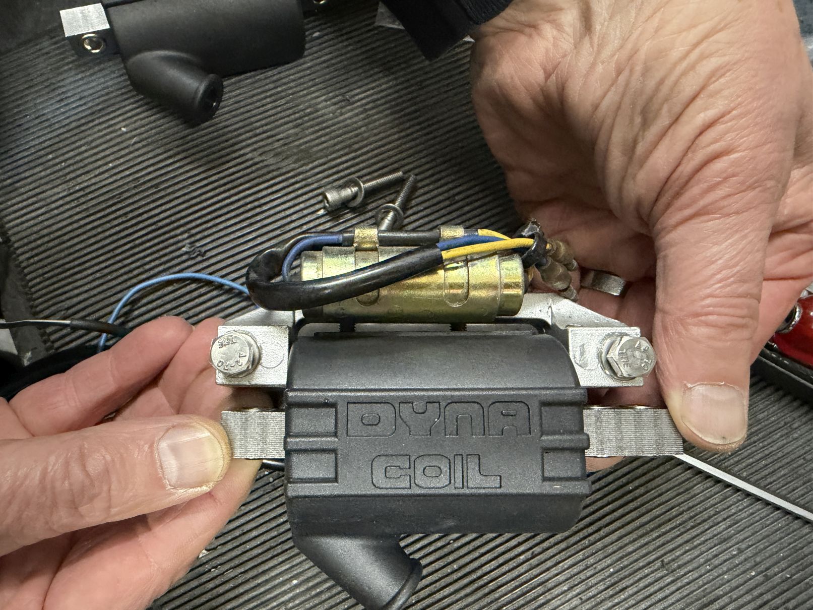 28.02.2026 - Zeit wird's, wieder an der Honda zu arbeiten - wir haben abgewartet, bis die Temperaturen wieder ertäglich sind. Bei Dieter werden die Zündspulen mitsamt Halterung aus dem Mopped ausgebaut, dann dackeln wir in meinen Bastel- keller. Zuerst wird der Gabelholm zusammengebaut, mit neuem Simmerring und neuem Dämpfer-"Kolbenring". Die Zündspulen machen viel, viel mehr Arbeit: Die neuen Spulen haben zwar fast die gleichen Abmessungen, aber die Befesti- gungsbohrungen passen nicht, also müssen wir praktisch ähnliche Halterungen anfertigen wie an meiner CB. Die alte Halterung der Spulen taugt nur zum Maß- nehmen, wir nehmen 5mm VA Blech und VA Sechskantstäbe, dann wird gemessen, gesägt, gebohrt, geschweißt, geflext und Gewinde geschnitten, bis die Spulen an die Rahmenbefestigung passen sollten, nach über 5 Stunden (!) sind wir endlich fertig, nicht, ohne am Ende kurz zu zweifeln, ob wir nicht doch noch einen Fehler gemacht haben - das stimmt zum Glück nicht, aber es ist ein deutliches Signal, das wir zu viel Zeit im Bastelkeller verbracht haben und die Zelte abbrechen müssen. Aber wir habens's geschafft, nun müssen der Gabelholm und die neuen Spulen "nur noch" angebaut werden, mal sehen, wann wir Zeit haben und das Wetter passt.