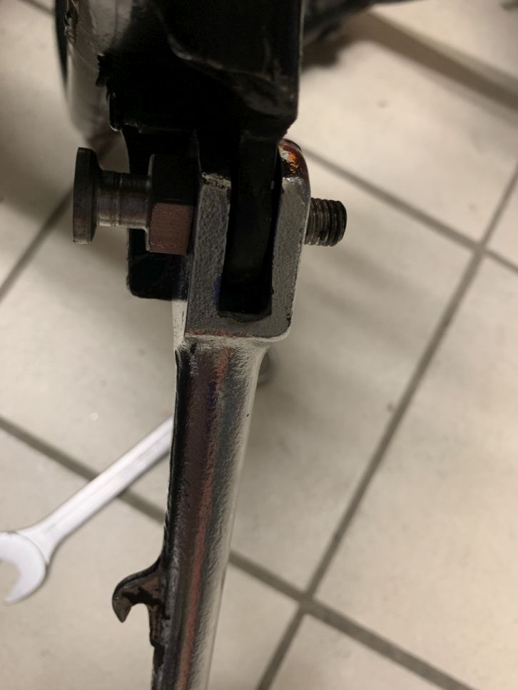 11.04.2020 - Nach den üblichen (nun länger dauernden) Samstagsaktivitäten mache ich mich ein wenig über die Honda her. Aus dem kürzlich auktionierten Sechskantmaterial will ich mir einen neuen Passbolzen für den Seitenständer herstellen. Der Stab wird in die Drehbank gespannt, dann in kleinen Schritten auf das richtige Maß gebracht, ein M10 Gewinde kommt auf die andere Seite. Im Gegensatz zu seinem Vorgänger integriere ich hier gleich einen Absatz, der, zusammen mit einem Federhänger, dafür sorgt, dass der Seitenständer von selbst einklappt. Die bestellten Seitenständerfedern für eine Moto Guzzi V11 passen perfekt zu dem Eigenbau - der TÜV wird nicht meckern können.