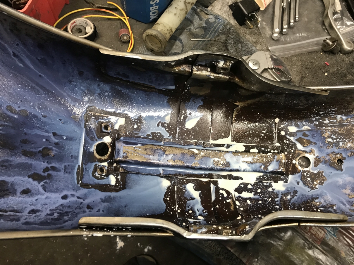mittels Drahtbürste von Rost befreit, dann abgewaschen und mit
