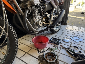 km seit  der Restaurierung auf dem Tacho. Also Motoröl raus,