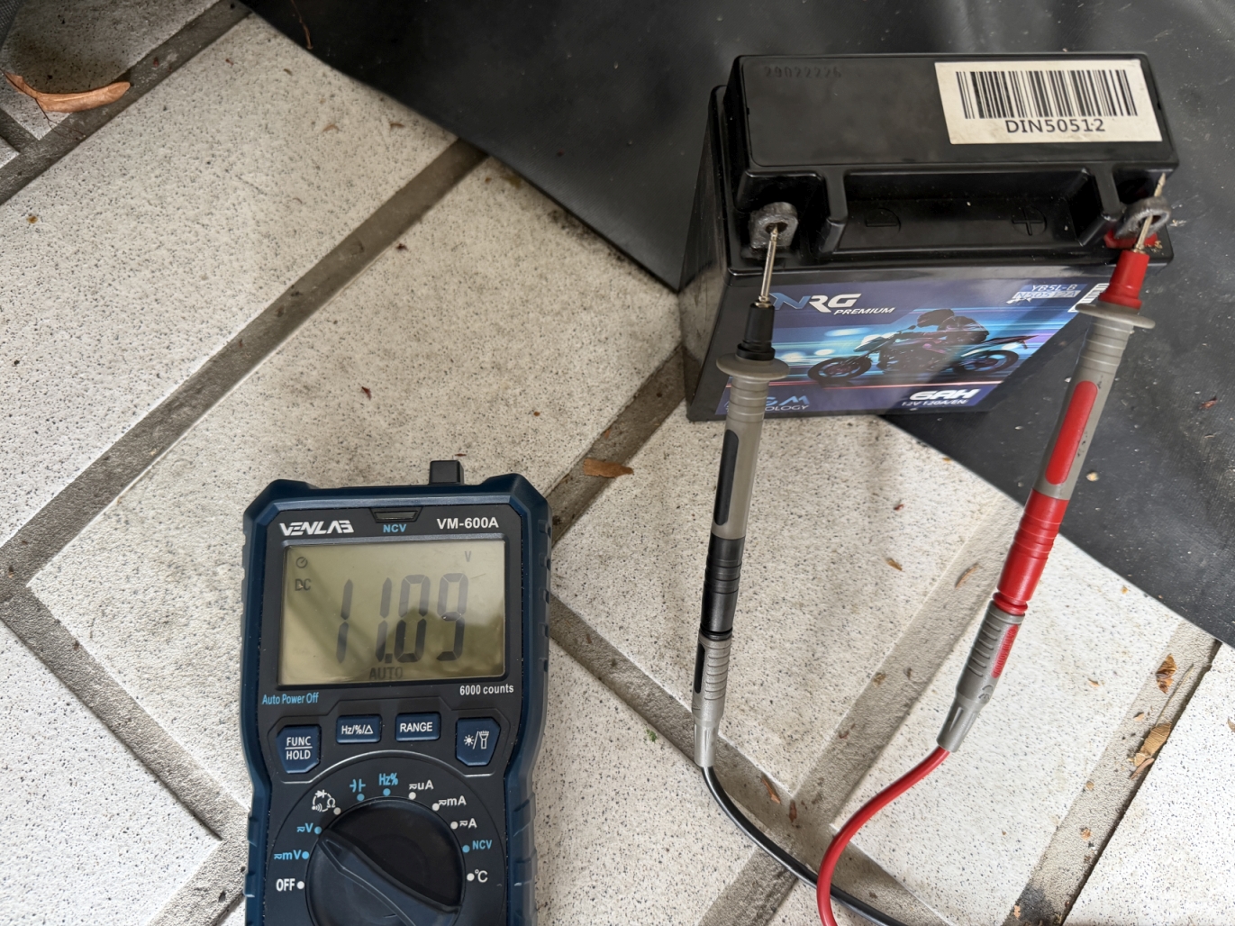 erneut: 11,9 Volt. Das Batterieprüfgerät bringt's ans Licht - die