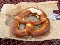 kurz vor Ulm eine Butterbrezel. Ich fahre etwas flotter als sonst,