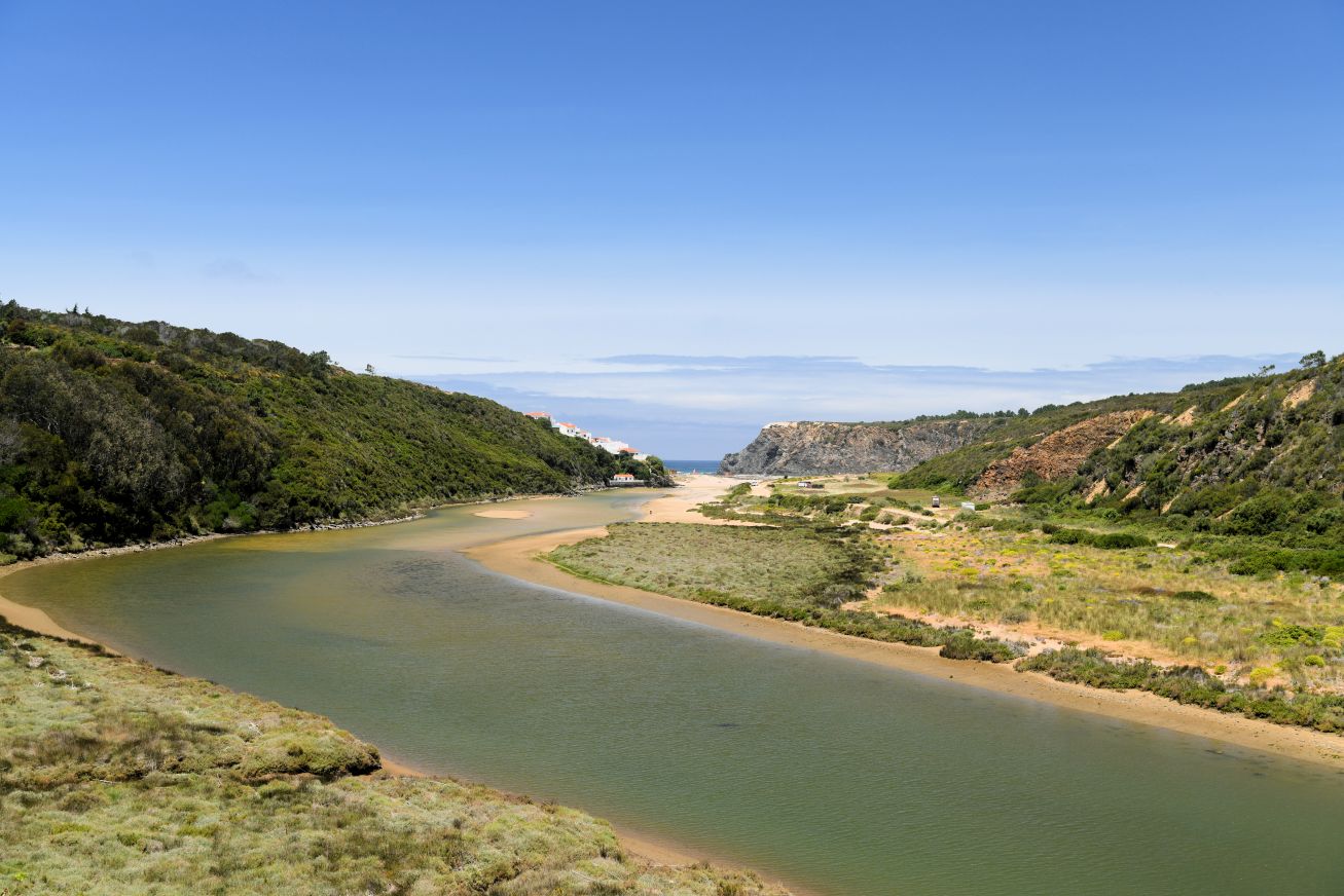 auf, die kurvige Landstraße macht Spaß. Am Odeceixe Strand ist